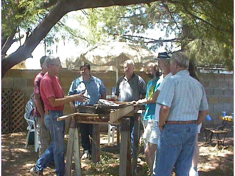 Ted Dearing (on left in red shirt) was kind enough to do a demonstration on aluminum casting for the group. Here he was showing samples of some of his past casting projects