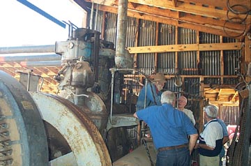 At the museum there is a one cylinder, 30 HP. engine that was converted from a mine car puller to a sawmill. The operator cranked it up and ripped a board to show us how it worked. The motor leaked more oil than what was in it!