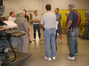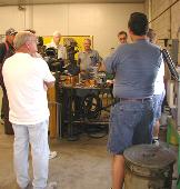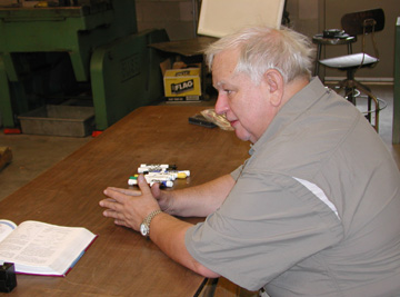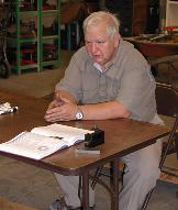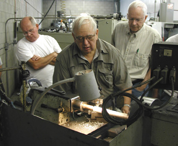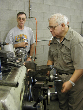 This was a discussion and demonstration of techniques for turning threads. Gene took us through threading on the lathe. Prinicples, grinding the tool, used of the threading dial, thread gauge etc. Then Gene proceded to setup and turn an o.d. thread on the lathe.The "rocket boys" Ron Zeppin, Mark Clark, and Norman Egolf described their hobby. Fascinating, far beyond the rockets we launched when we were kids. See their websites at: http://www.ahpra.org and http://www.trailertrashaerospace.com