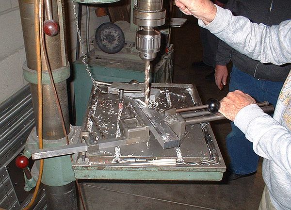 The results of Bob's hand sharpening were tested in the drill press up front, and as expected it worked just fine.