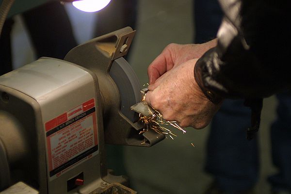 Bob has at the grinder with a drill bit after explaining the proper angles and movements to hold the bit when hand sharpening. He made it look sooo easy!