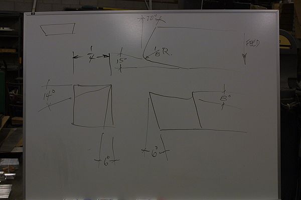 Neil diagrams the various angles suggested for lathe tool bits when working with HSS. We spent quite a good bit of time discussing the reasoning behind the angles incorporated into different tools. Specifically our example the right handed lathe bit. We covered roughing and finishing and the radii incorporated into different bits for both processes. Some discussion of specialty bit making was covered. Using oil hardening stock to make form tools and re-harden them. This was covered in detail in a previous meeting this year. There are those pesky doughnuts again....