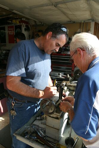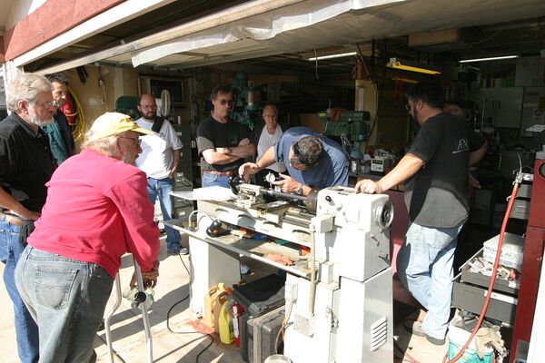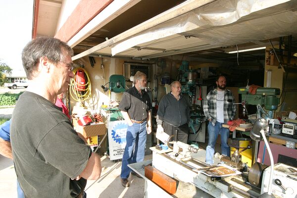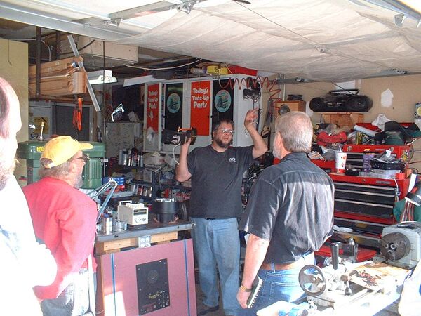 The meeting was held at Bill VanOrden's shop in Tempe. Thanks for letting us to invade! Thanks go to Earla Marshall for making a goodie run for sodas and stuff for the post meeting weenie roast.