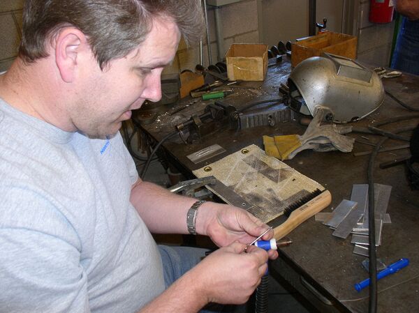 welders were brought to the meeting. Rick Sparber (back to camera), Owen