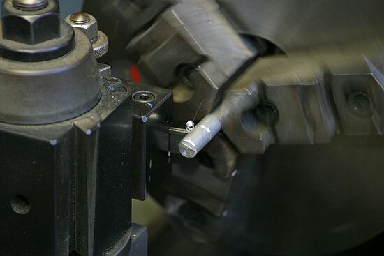 Cutoff tool cutting thread relief prior to threading.