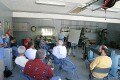 We began a bit late due to traffic or street numbering concerns, next time maybe we should put the white board out on the street. After we figured out that everybody was heading up the hill it was easy to reign y'all back in the right direction. Around 11:00 we started with introductions. 11:20 we began discussion on the basics of threading for the home shop. While many points had been covered I believe it went something like this. Some basics of threading were introduced through the use of overheads, handouts and group discussion. These covered but were not limited to; What is a thread and threading. What is a proper thread. The differences between tolerances in class 1 vs. class 2. (class 2 is hardened and half the tolerance specs of class 1). Clearances and failures due to improper clearances. A discussion of the different tooling for this operation and how each has its own advantages.