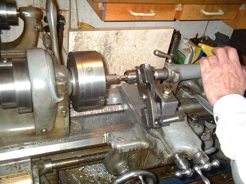 Once the work piece is center drilled, clamped in the headstock, the live center