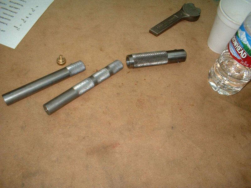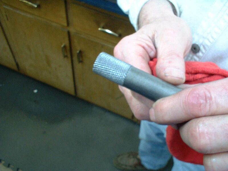 He recommends using the scissor type knurling tool for best results. This design relieves some of the pressure the equipment must absorb in the process by the 180 degree opposed action of this tool.
