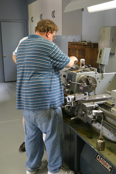 Dave Rabenius still machining nozzle holders, Neil Butterfield "hiding"