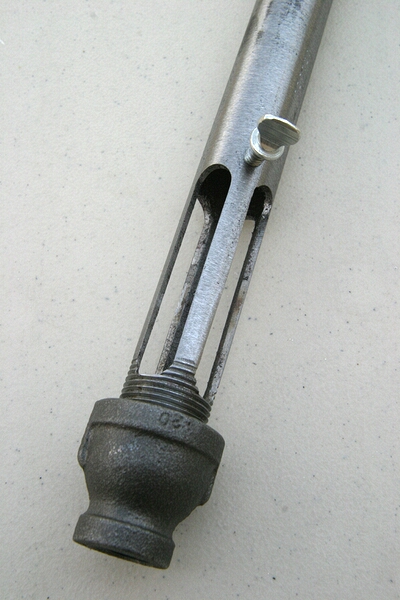Detail of the top end of the burner housing.