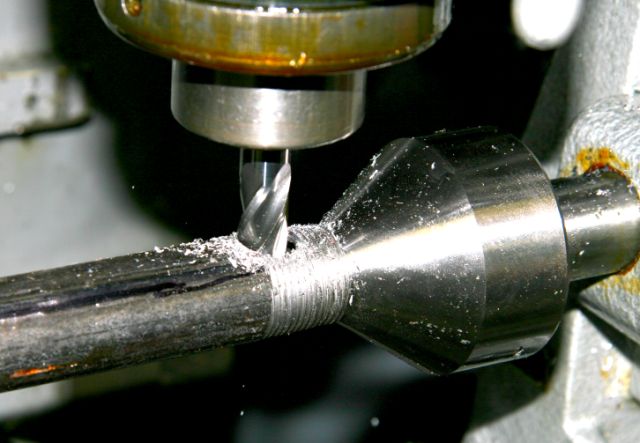 Slotting the burner housing. Four slots needed to be cut in the pipe