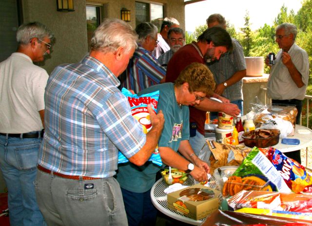 The crowd descends upon the food!
