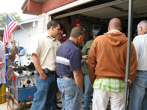 Bob Harbour talks about the torch as the group looks on.