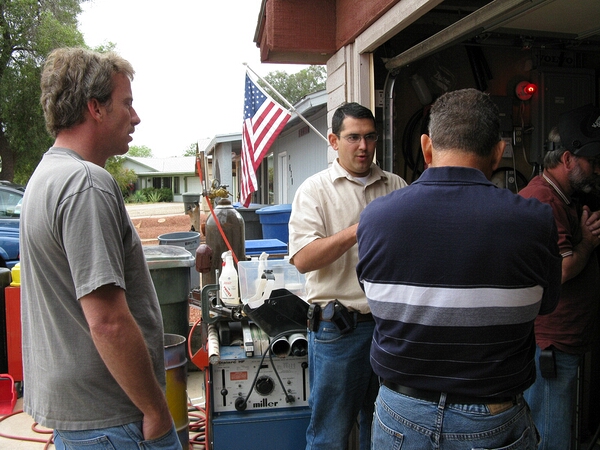Neil Butterfield listens to Alex talk about the welder.