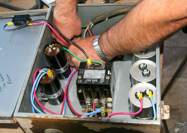 Marty wires in the motor in preparation for testing.
