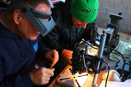 The drilling crew hard at it...