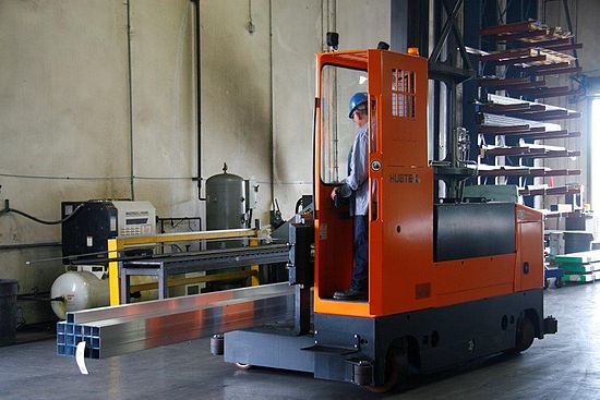 Another shot of the "skinny" forklift. Note the rollers that help ride it around the curbing.