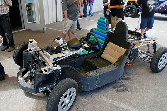 3D Printed Car. Several sub-sctions are 3D printed and then glued together.