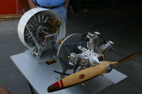 What's better than one engine at the meeting? TWO engines at the meeting! The engine in the rear is a rotary engine, not to be confused with a Wankel. On this engine the crankshaft, rods and pistons are stationary (fastened to the airframe) and the rest of it spins. This type of engine was used on the Fokker Dr. 1 Triplane made famous by the Red Baron Manfred Von Richthofen in World War I