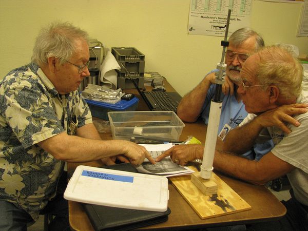On the front of the table is the Horizontal saw feed mechanism made from a hydraulic door closer.