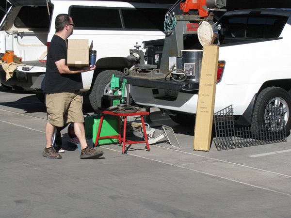 Corey, scoping out the chop saw. Sorry Corey, Beevo got it!
