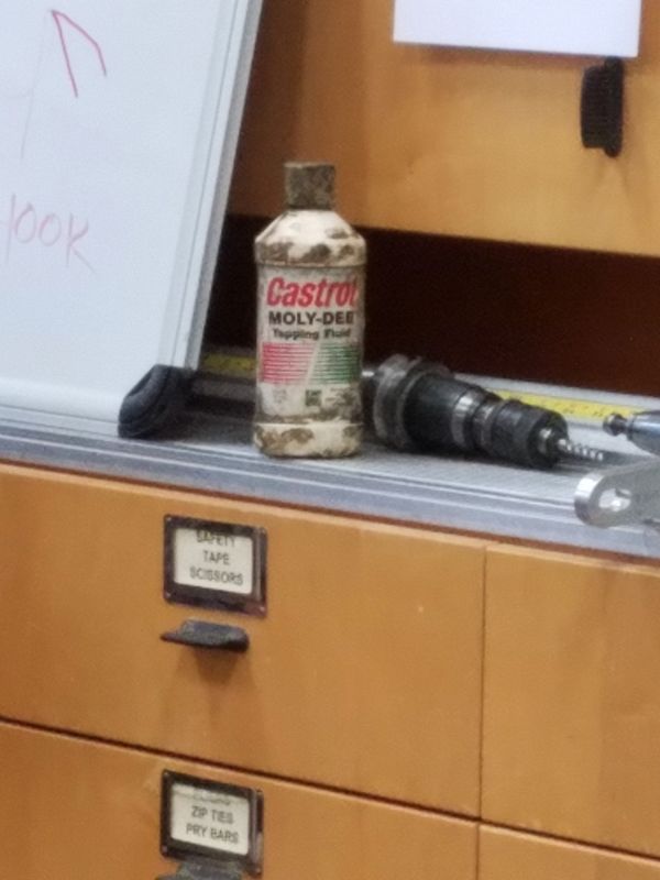 Castrol Moly-Dee is considered one of the very best tapping fluids on the market. It is also one of the best materials to stain clothing permanently. According to Brian and his son, if you get it on your clothes it is stained for life!