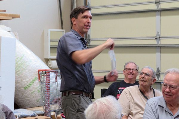 New member Craig Edinger shows off his widget** an access cover for light poles.