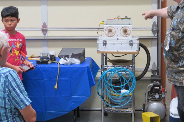 More show and tell, dental abrasive cabinet adapted to shop use for small items, courtesy John Herman