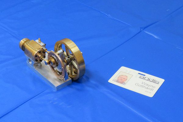 A very clever and beautiful steam/ compressed air engine. Of note is the gear mechanism that allows the connecting rod to need no pivot. Courtesy Wayne Gotthardt