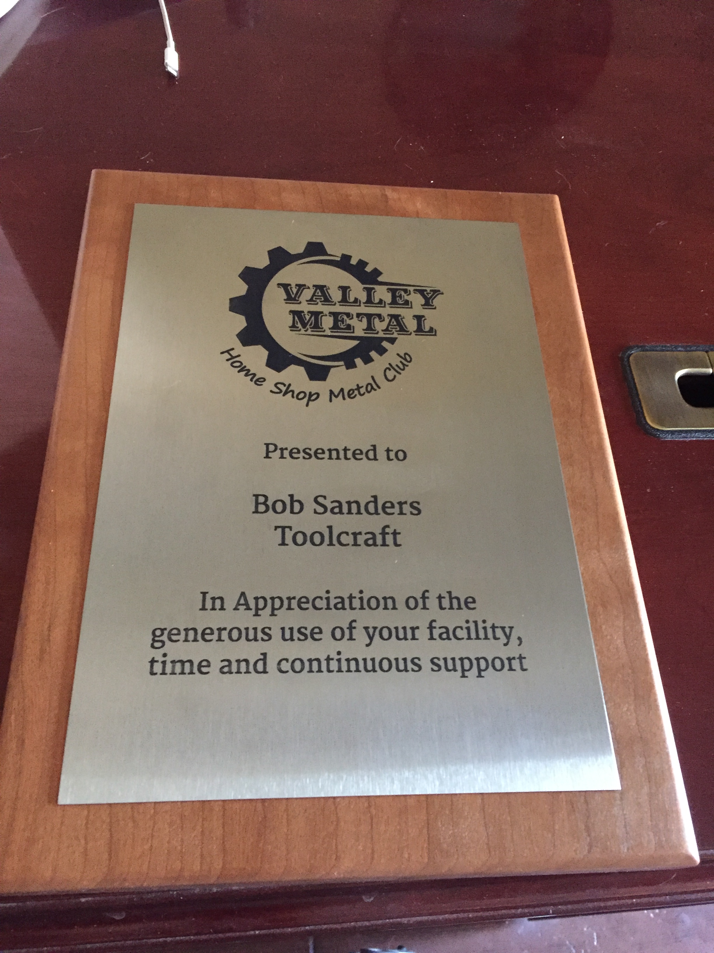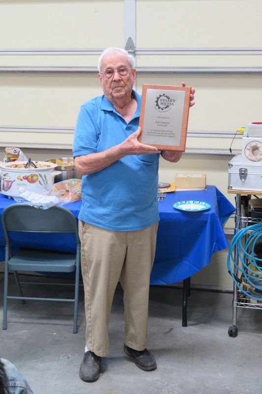 Bob Sanders shows off the plaque he was given to honor his contributions to the club.