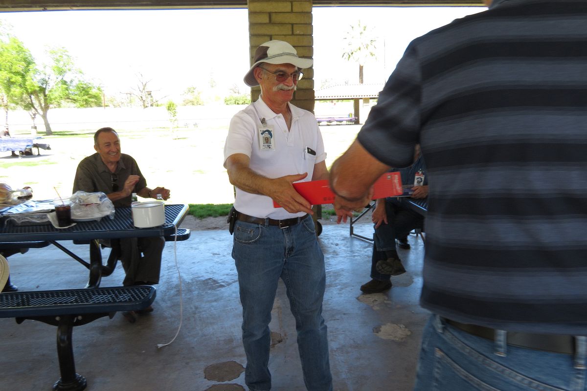 Rick Sparber receiving the prize of the Electric Sheet Metal Shears donated by Industrial Metal Supply