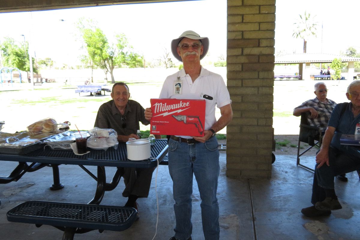 Rick Sparber shows off the Shears he won that were donated by Industrial Metal Supply