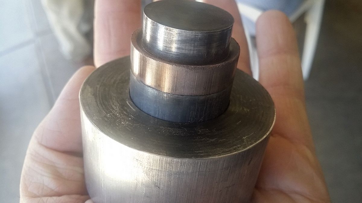 The pressed metal part being removed from the die