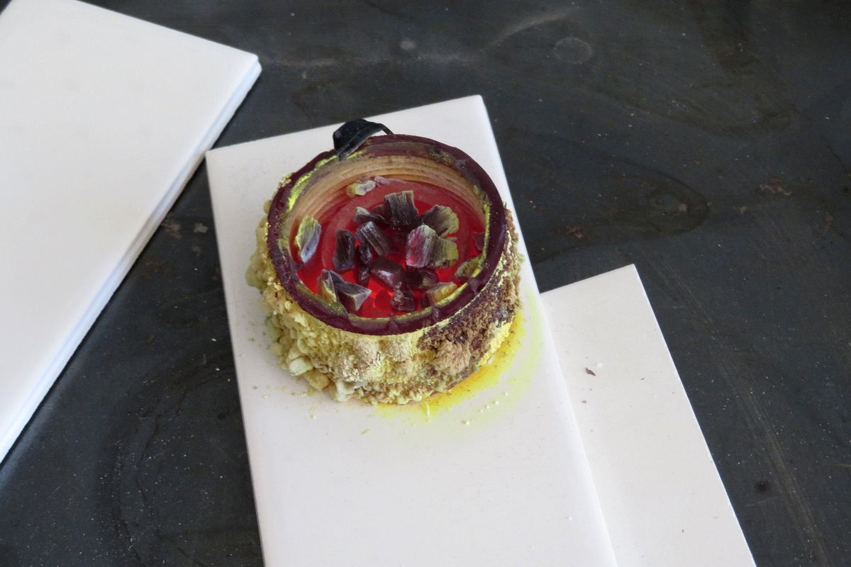 The part, fresh from the oven. Like good cookies, it needs to cool a bit. Chips of wood were added to burn off any oxygen in the cavity.
