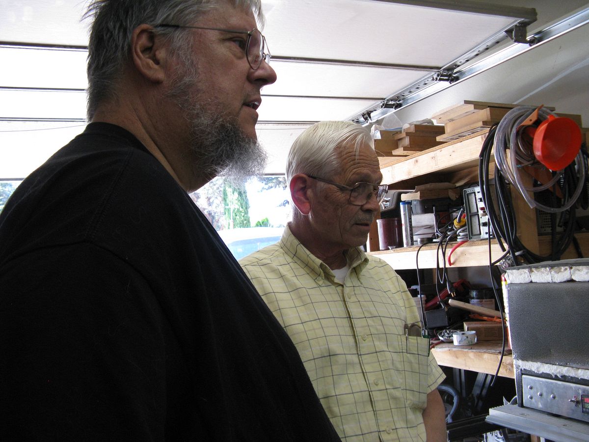 Beevo and Stan Gorodenski look at Adam's burnout oven.
