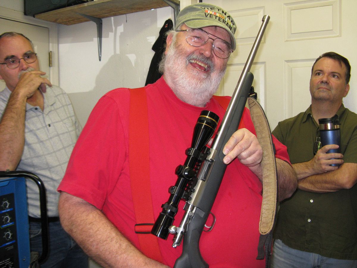 Roy shows off his Ruger .357 bolt action. He has been siting it in and making changes to get the grouping down to a decent size.