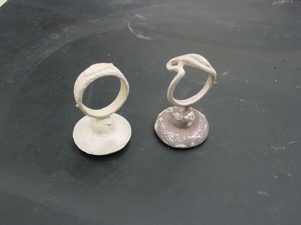Here are a couple of the commercially made wax ring patterns. The patterns are a one time use item and hence the "lost wax" part of the process.