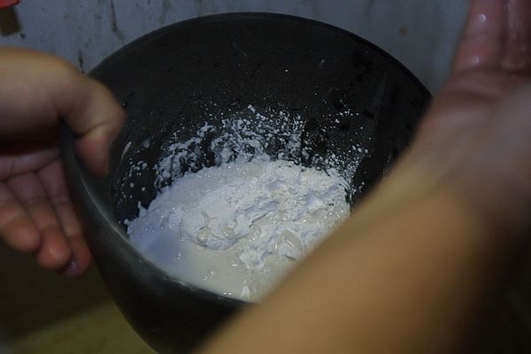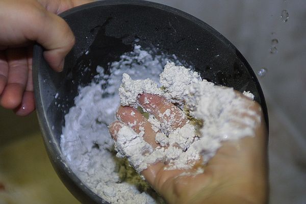 Kneading the mixture by hand helps break up clumps and makes a smoother mixture.