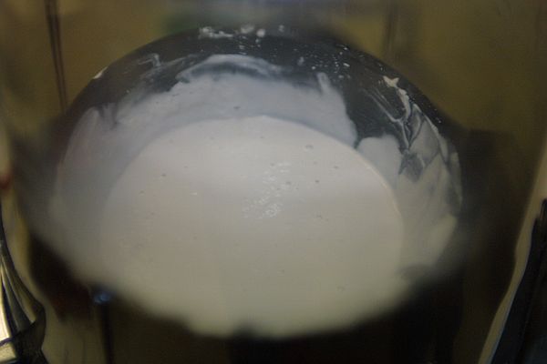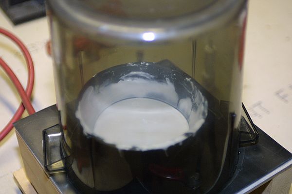 Note the trapped air rising to the surface. 30 - 50 seconds should be enough once the mixture stars to release air.