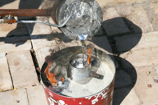 The pour, you gotta love this. All kinds of stink and smoke. Use pink or white foam, the green will produce toxic gasses.